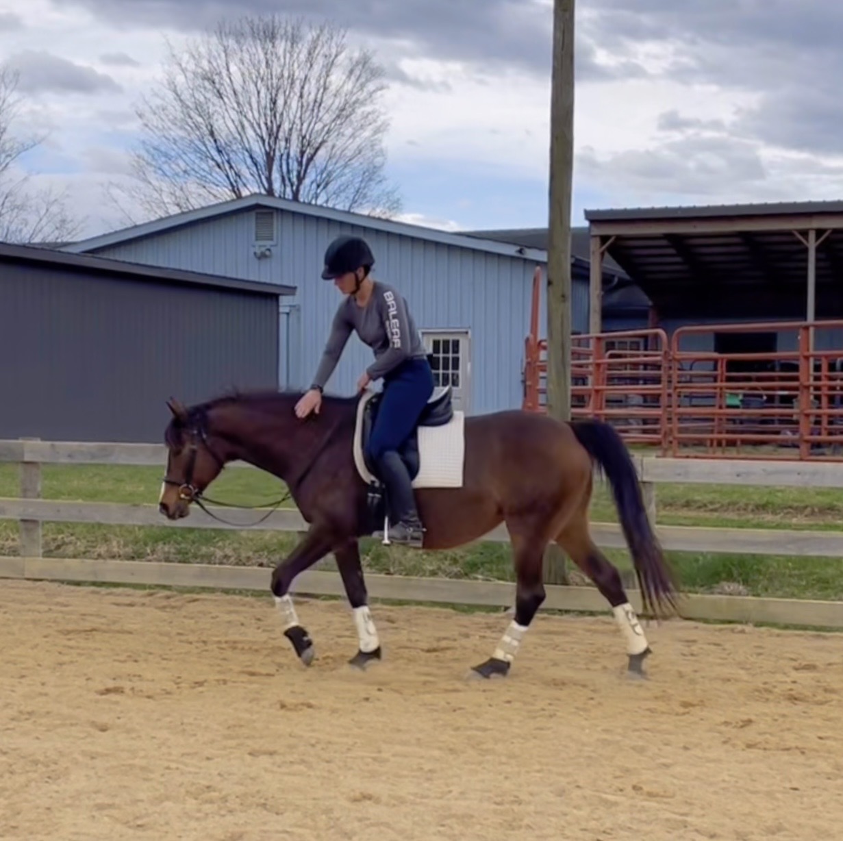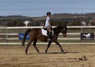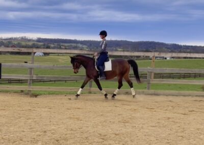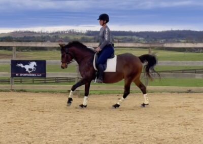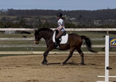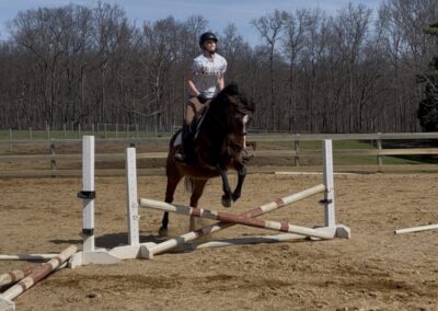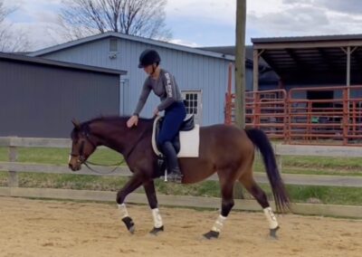 Over the past year, Soco has thrived in professional training, developing a strong foundation both on the flat and over fences. Her rideability makes her a joy in the arena, and she’s taken to jumping like a fish to water—showing natural ability, confidence, and enthusiasm for the job.