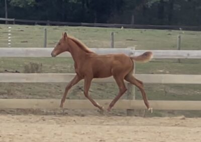 She is well-socialized, regularly handled, and stands quietly for the farrier, grooming, and bathing. Already inspected by Westfalen NA, she comes with full documentation including a passport, microchip, and a lifetime USEF number. Maple was weaned on 9/15/25 and ready to go to her new home. Payment plans can be discussed if she is boarded with me until final payment is made.
